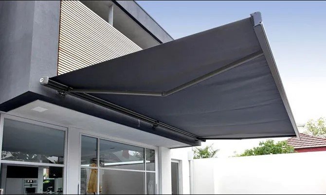 Awning gulung otomatis memiliki desain modern yang cocok untuk berbagai konsep bangunan, baik minimalis maupun klasik.